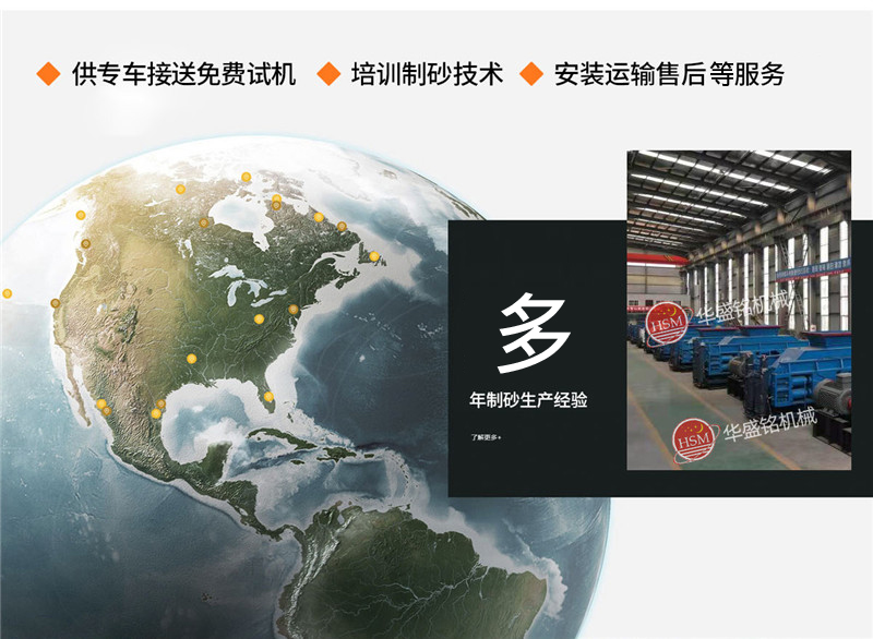 河卵石、方解石、石英、玻璃、大理石、鵝卵石、膨潤土、鐵礦石、青石、山石、石灰石、風化砂、輝綠巖、花崗巖、玄武巖等物料的破碎制砂工作。